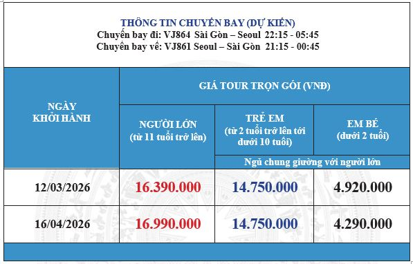 Khởi hành: 12/03 & 16/04/2026
