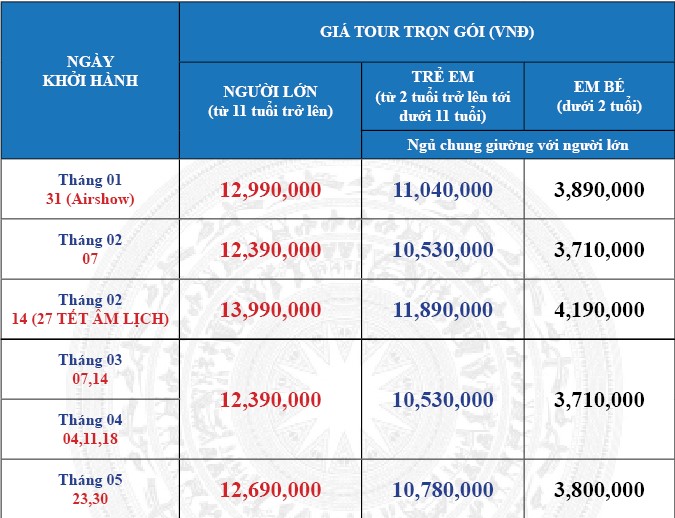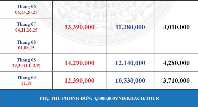 Khởi hành: Xem lịch bên dưới