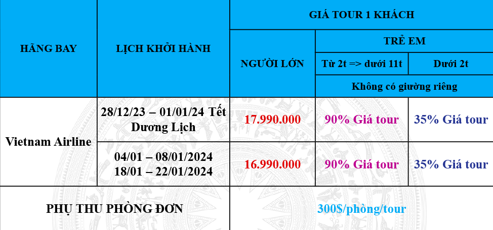 ***Lưu ý: Thứ tự chương trình có thể thay đổi theo sự sắp xếp của Hướng Dẫn Viên để phù hợp với tình hình thực tế nhưng vẫn đảm bảo đầy đủ các điểm tham quan đã nêu trong chương trình.